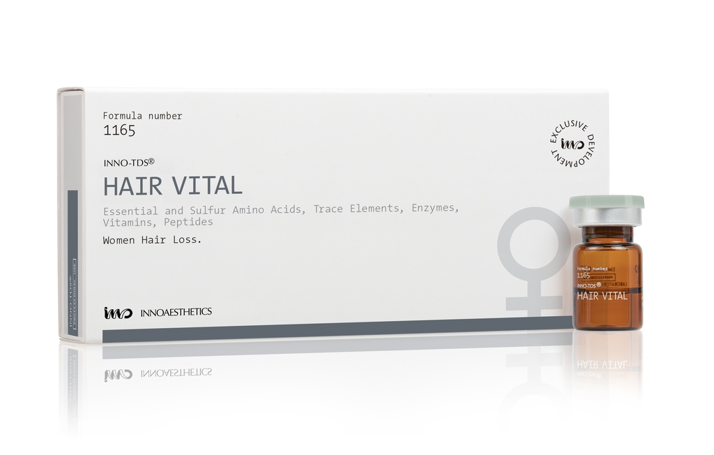 HAIR VITAL – powerful intradermal treatment based on Sulphur Amino Acids and coenzymes to specifically treat alopecia in women. Nourishes the hair follicle, preventing its fall and increasing its density.
