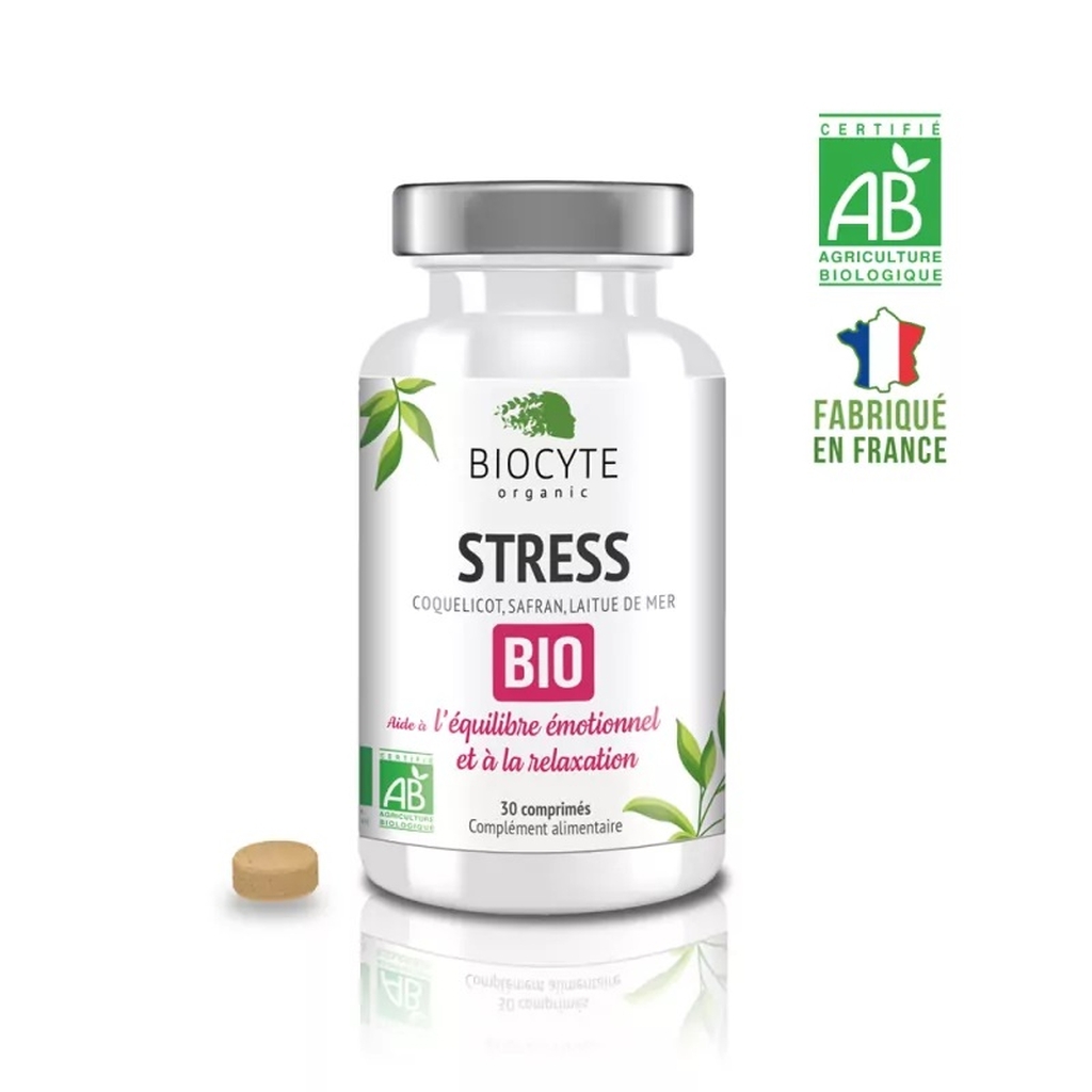 Biocyte STRESS BIO® yra sertifikuotas ekologiškas maisto papildas, kuriame yra ekologiškų aguonų ir organinio šafrano. Organinis aguonų ekstraktas, esantis STRESS BIO tabletėse, skatina atsipalaidavimą, o magnis padeda atkurti normalią nervų sistemos veiklą.
